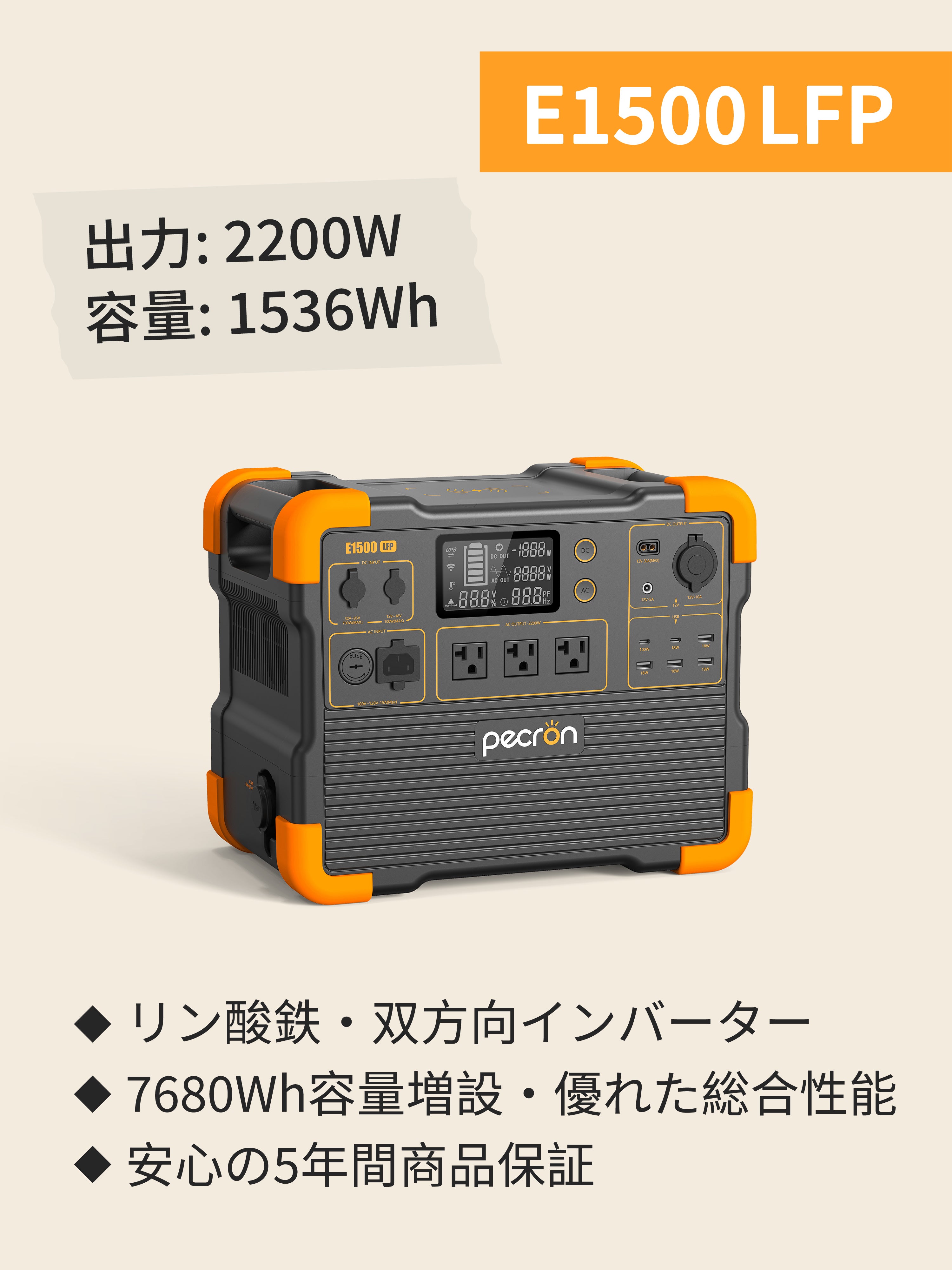 初めてポータブル電源をPECRONさんでE300LFPを購入しましたが、初めての購入だった為、最大出力600Wの物にしましたが、使用してみてこれは凄い良いものだと思いました、災害対策用にもう少し大きめのW数の物をただいま検討中です、勿論PECRONさんで。