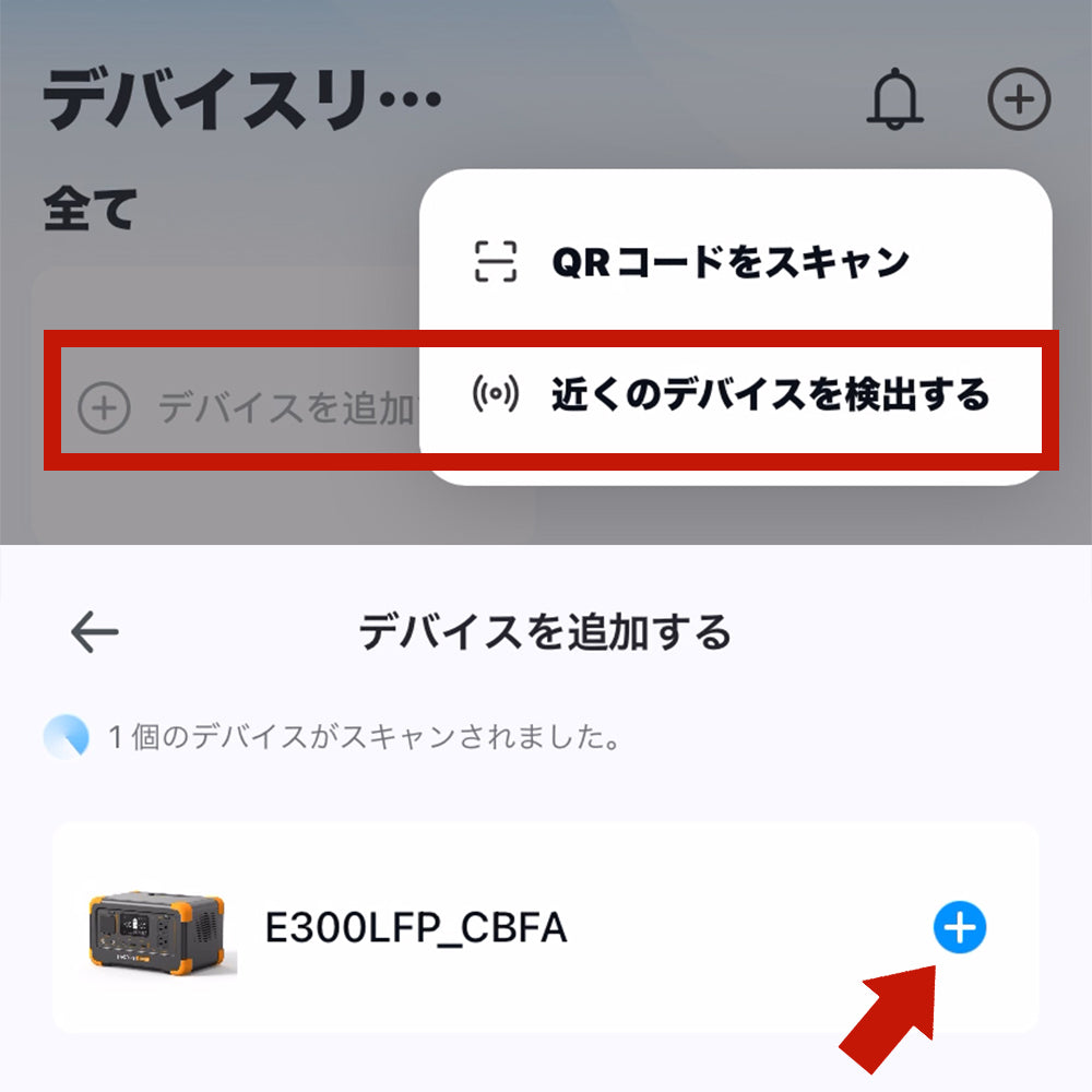 PECRONアプリ上に、「デバイスを追加する」をクリック