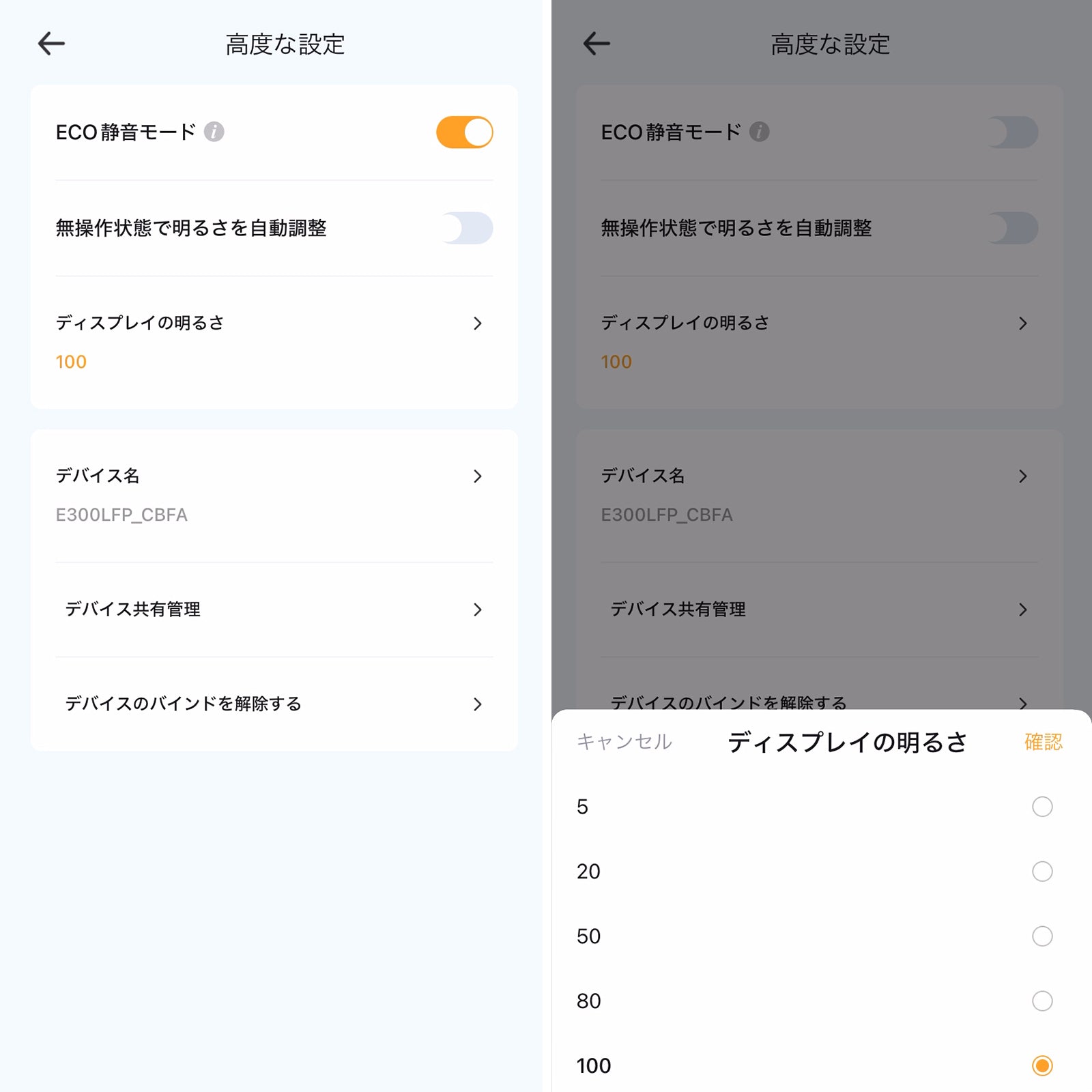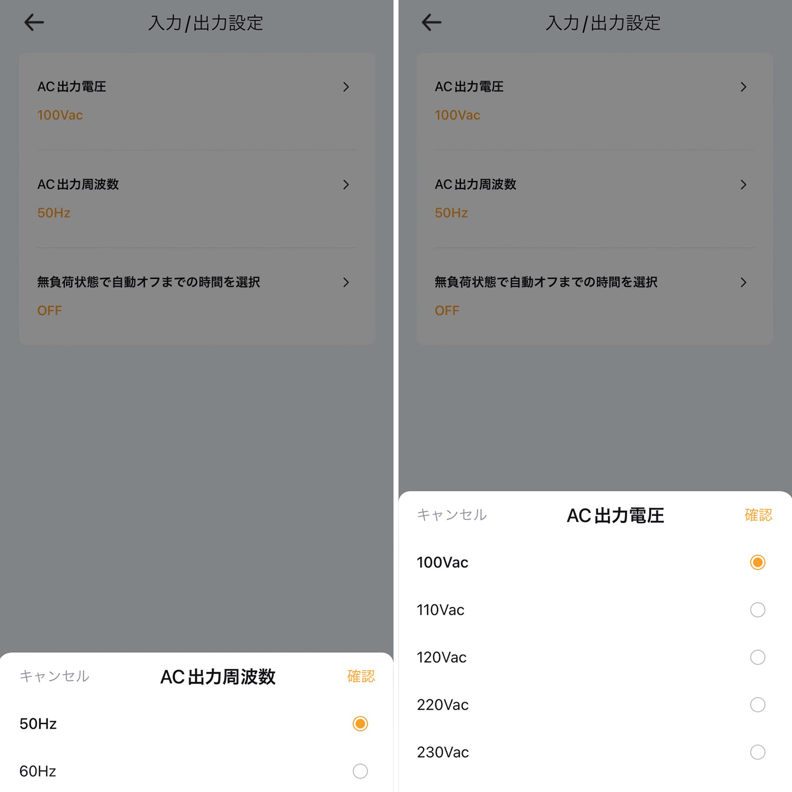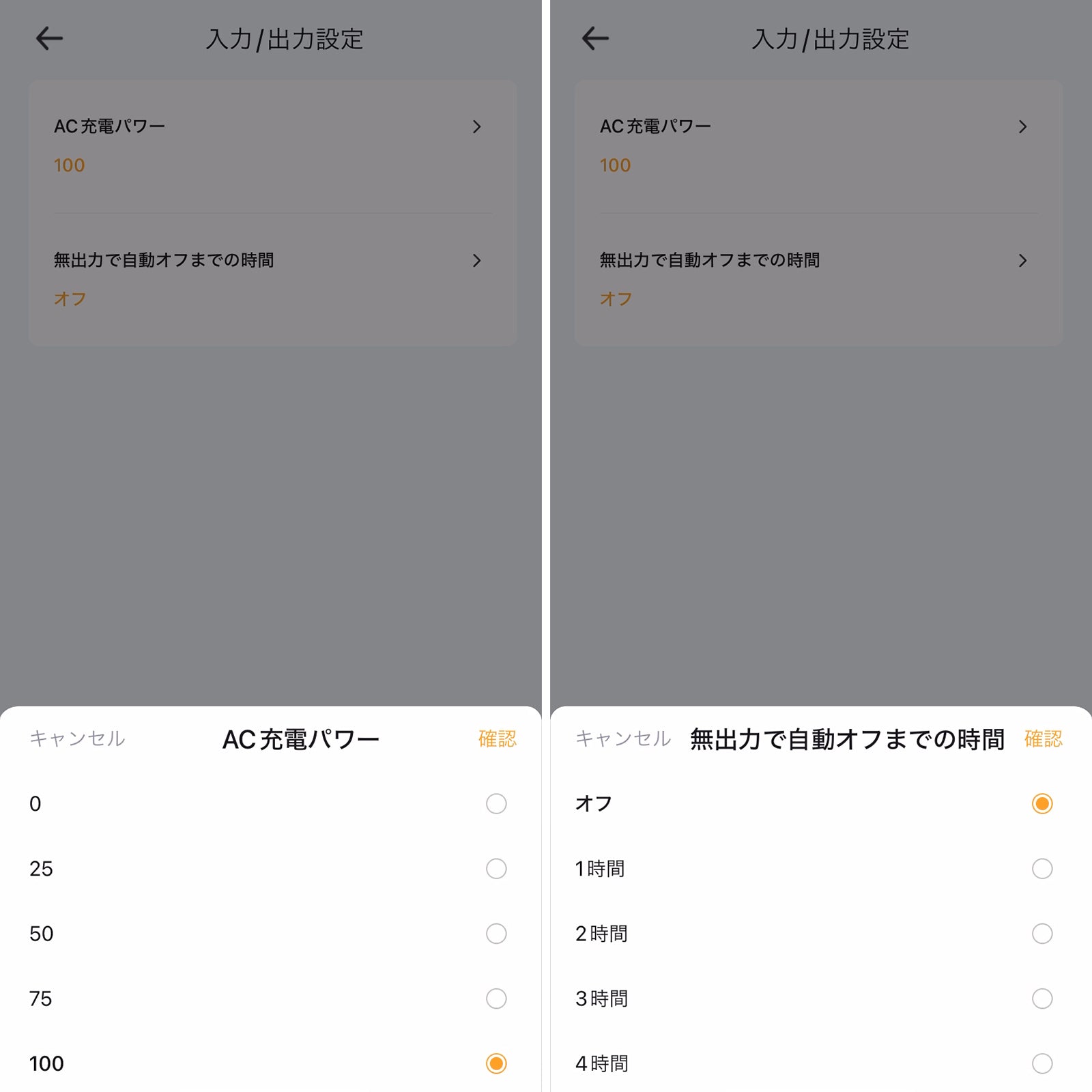 「一部の設定」はAC充電パワー、ECOモード、無負荷状態で自動オフまでの時間となります。