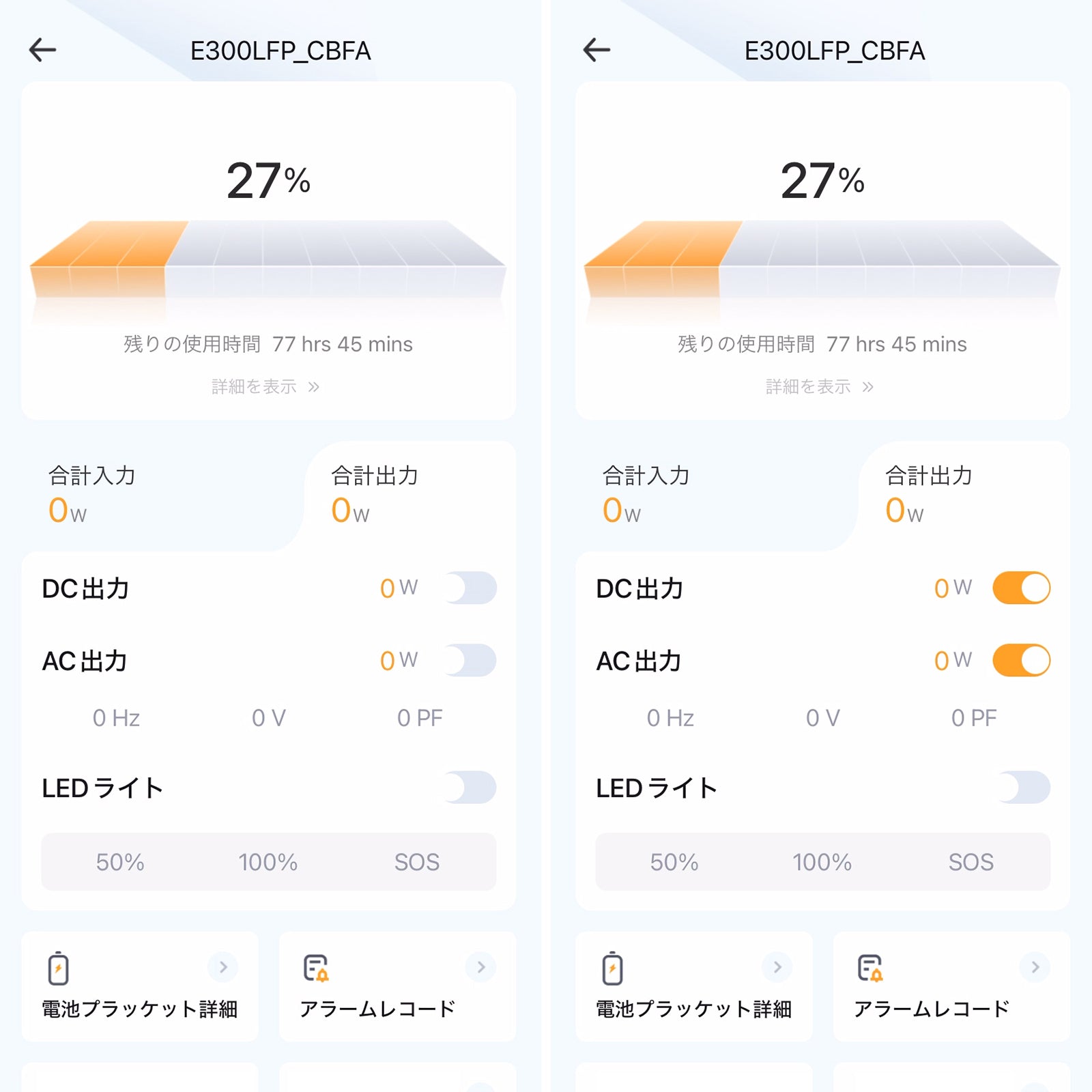 E300LFP電源ONの状態で、AC電源ボタンとDC電源ボタンを3秒長押ししてから、本体ディスプレイ上の「WiFiマーク」点滅すると「ペアリングモード」に進む。