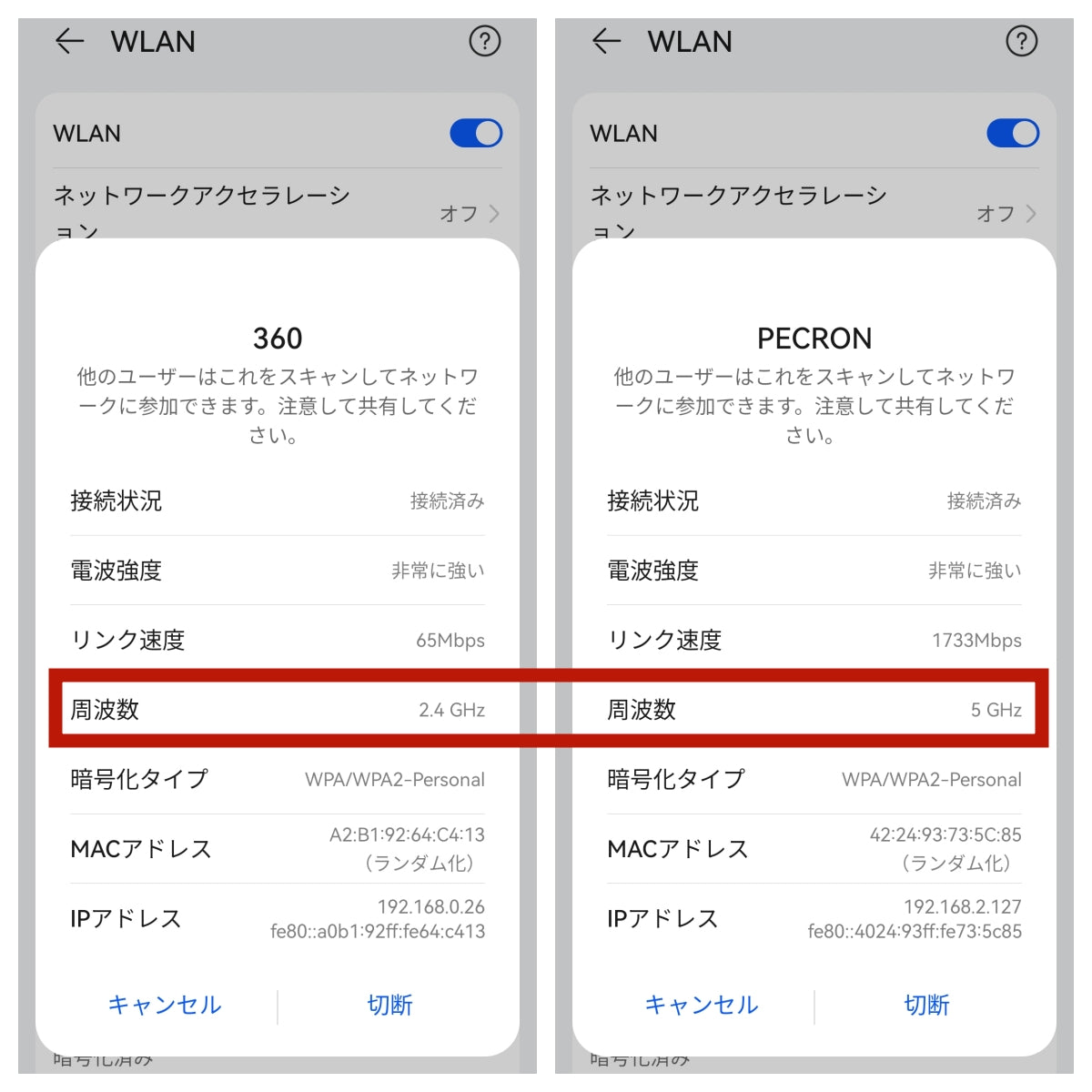 ※ 5GHzまたは2.4GHzと5GHzの両方を使用するネットワークには対応しておりません。