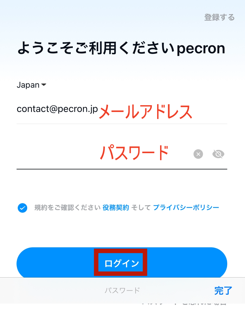 [メールアドレス] と [パスワード]を入力し、ログインします。