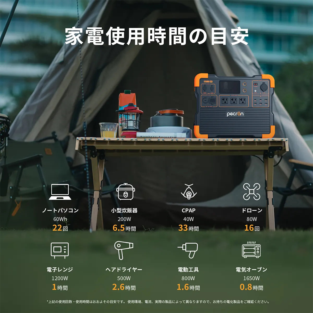 E1500LFPで使える電気製品の使用可能時間はどう計算すればいいの?