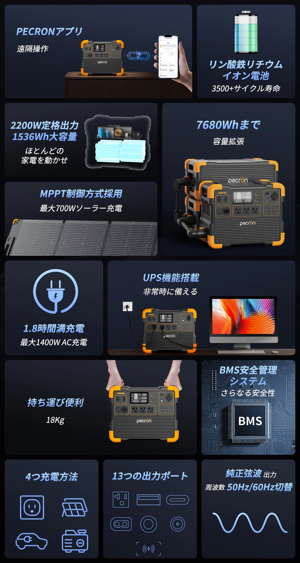 PECRON E1500LFPポータブル電源|1536Wh・2200W
