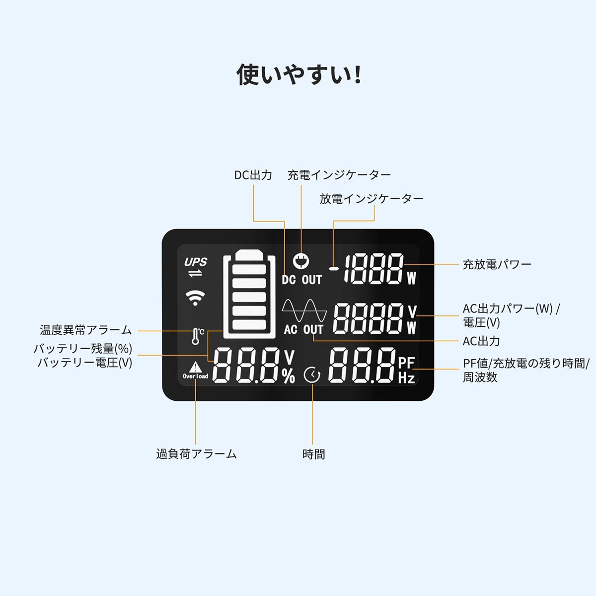 PECRON E2000LFPは、ディスプレイや給電・充電用の端子類が全て前面にあるため、見やすく使いやすいのも大きな特徴です。