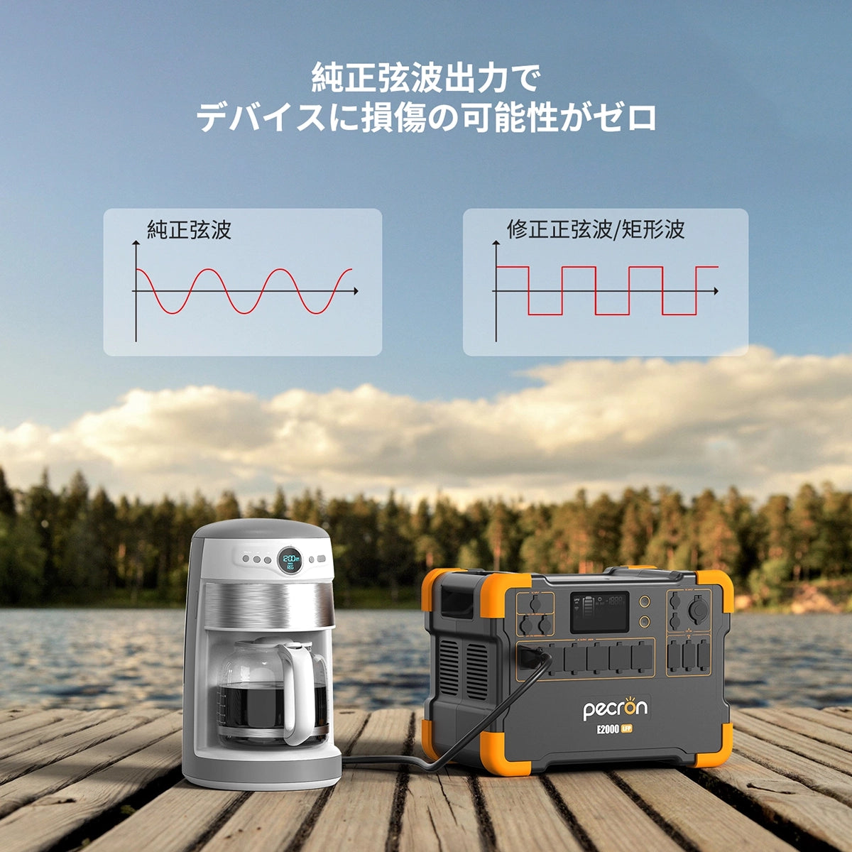 正弦波の2000W出力が可能なので、ほとんどの電化製品も安全に使用できます。