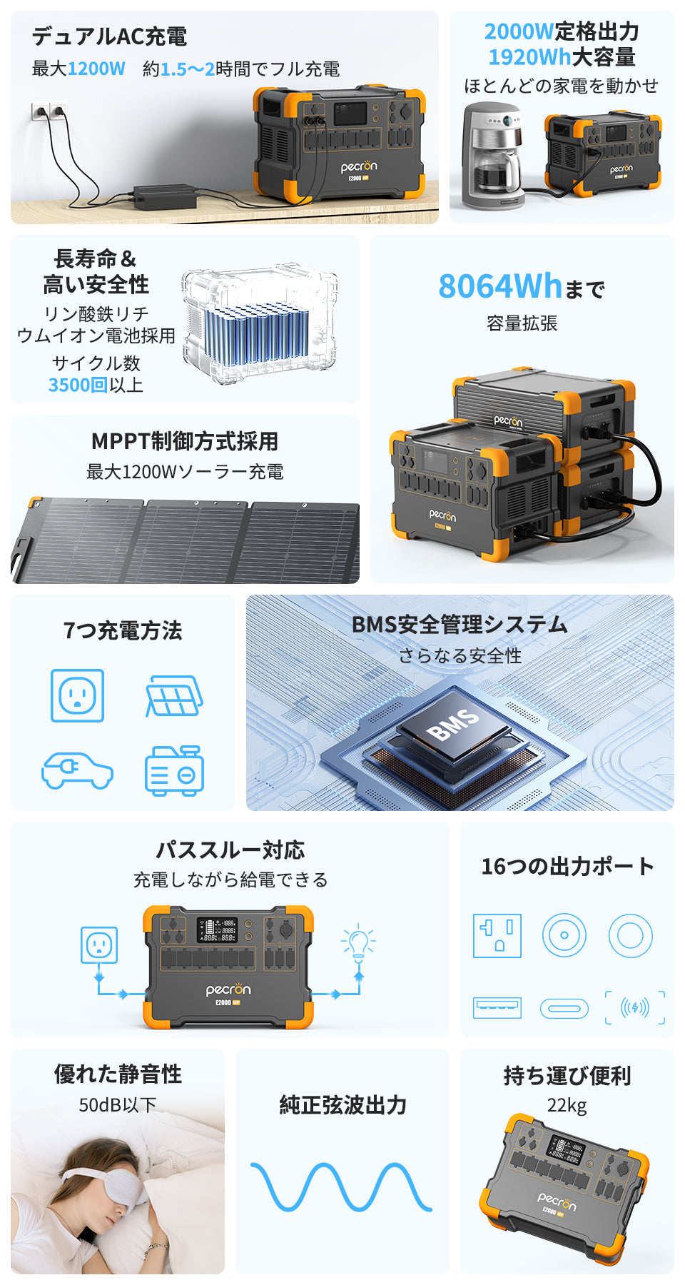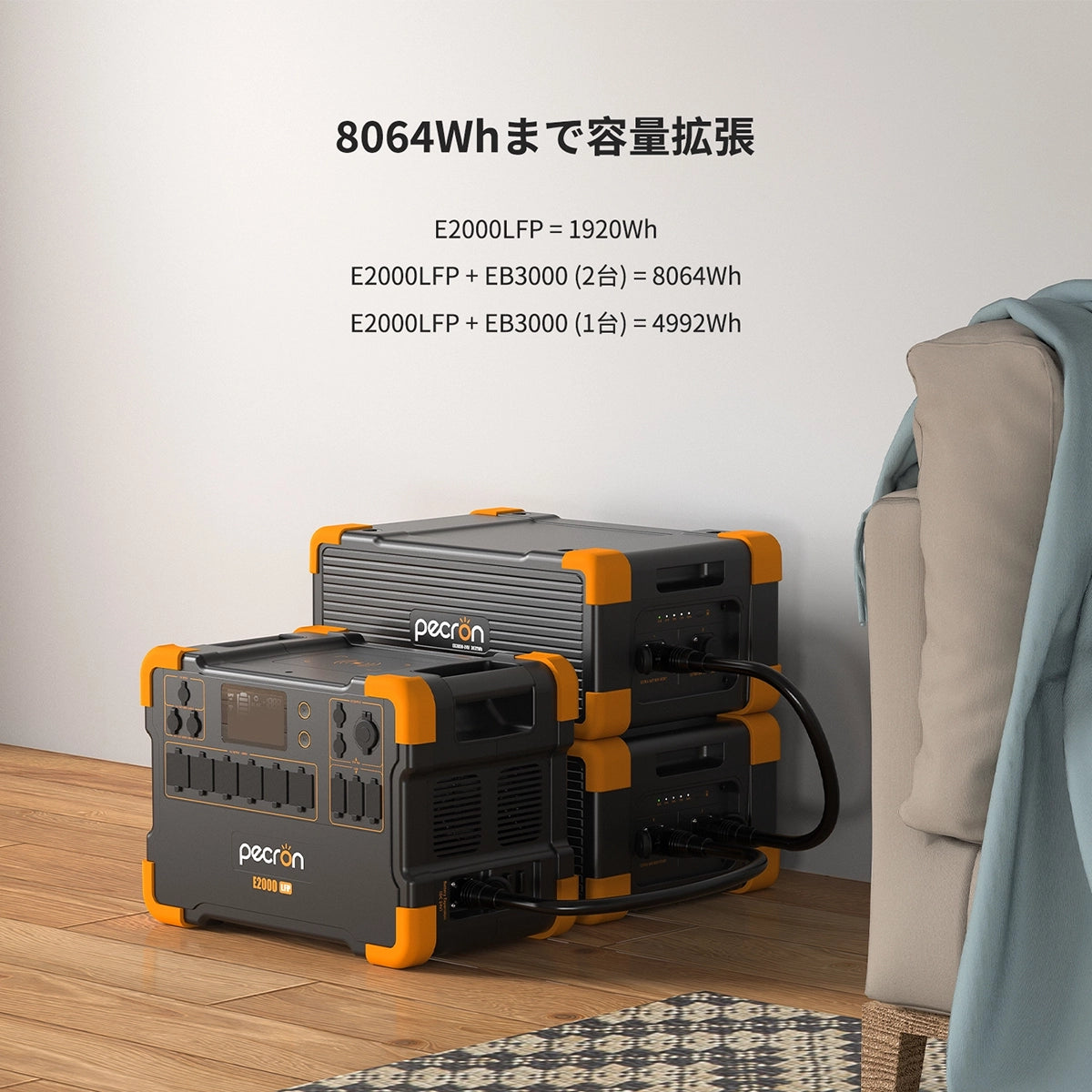 PECRON E2000LFPポータブル電源+2台EB3000-24V拡張バッテリー(セット)