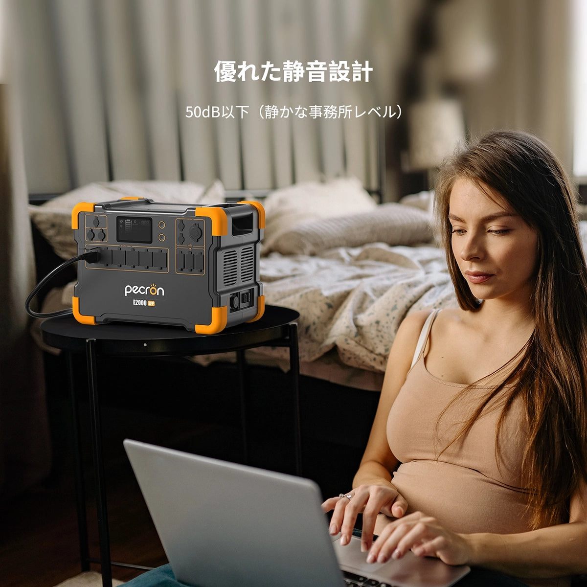E2000LFPは、優れた静音設計により、使用時の騒音を50dB以下に抑えました、キャンプ泊/車中泊のや室内の利用にもおすすめです。