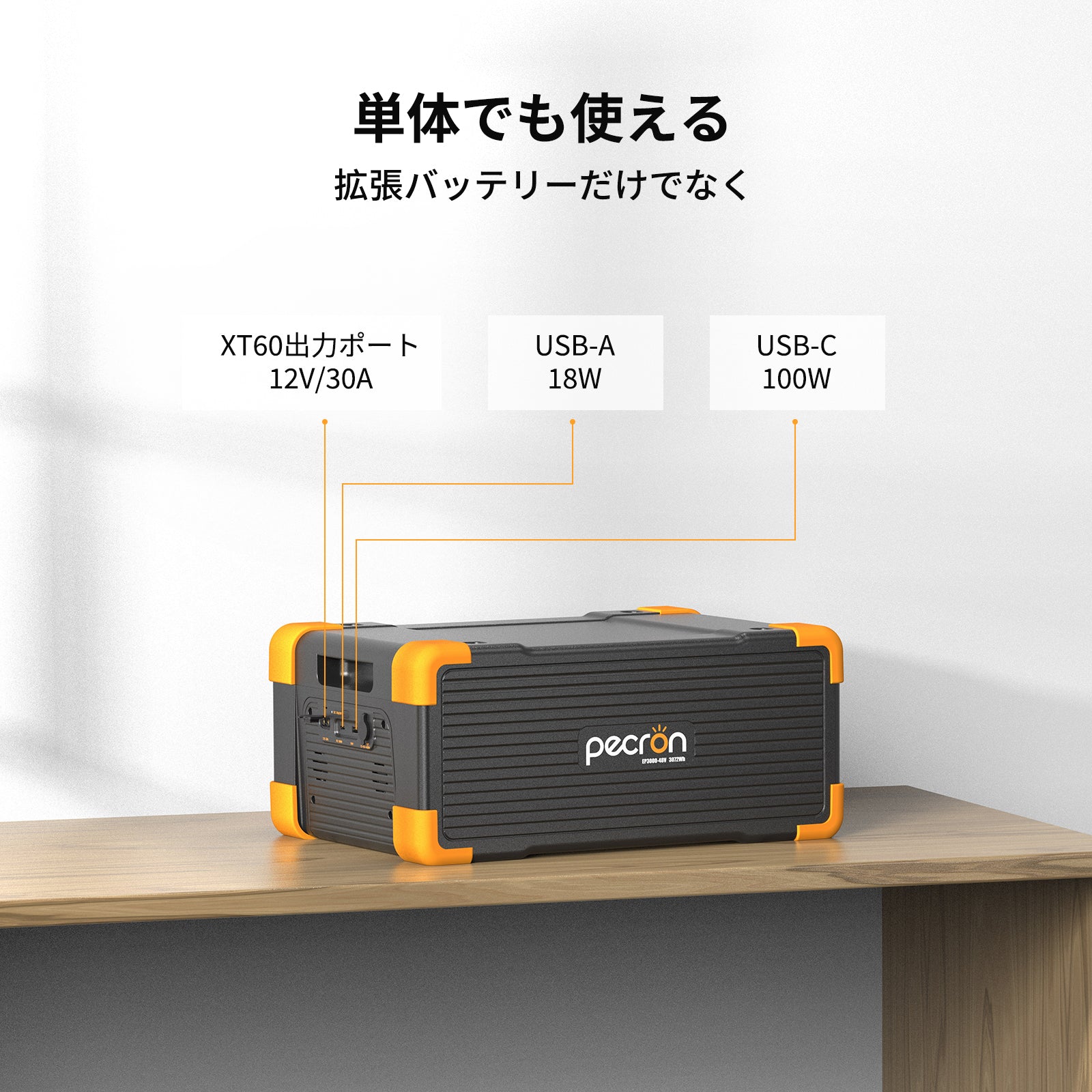 EP3000-48VはUSB-A、USB-C出力ポート、XT60出力ポートを備えて、単独でもDC電源として利用できます。