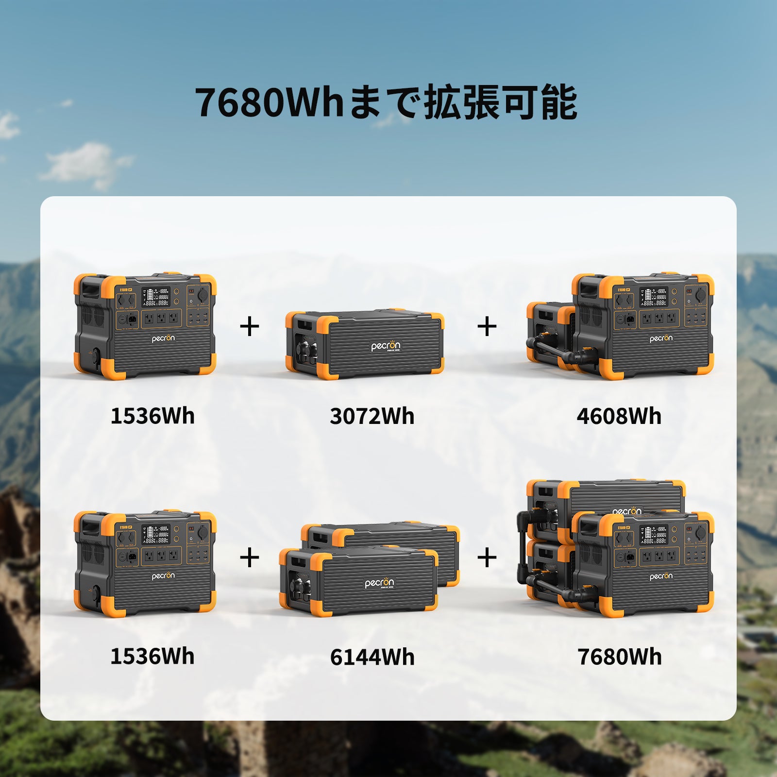 ・3072Whの大容量拡張バッテリー、PECRON E1500LFPと最大2台で接続して、容量は1536Whから7680Whに拡張可能