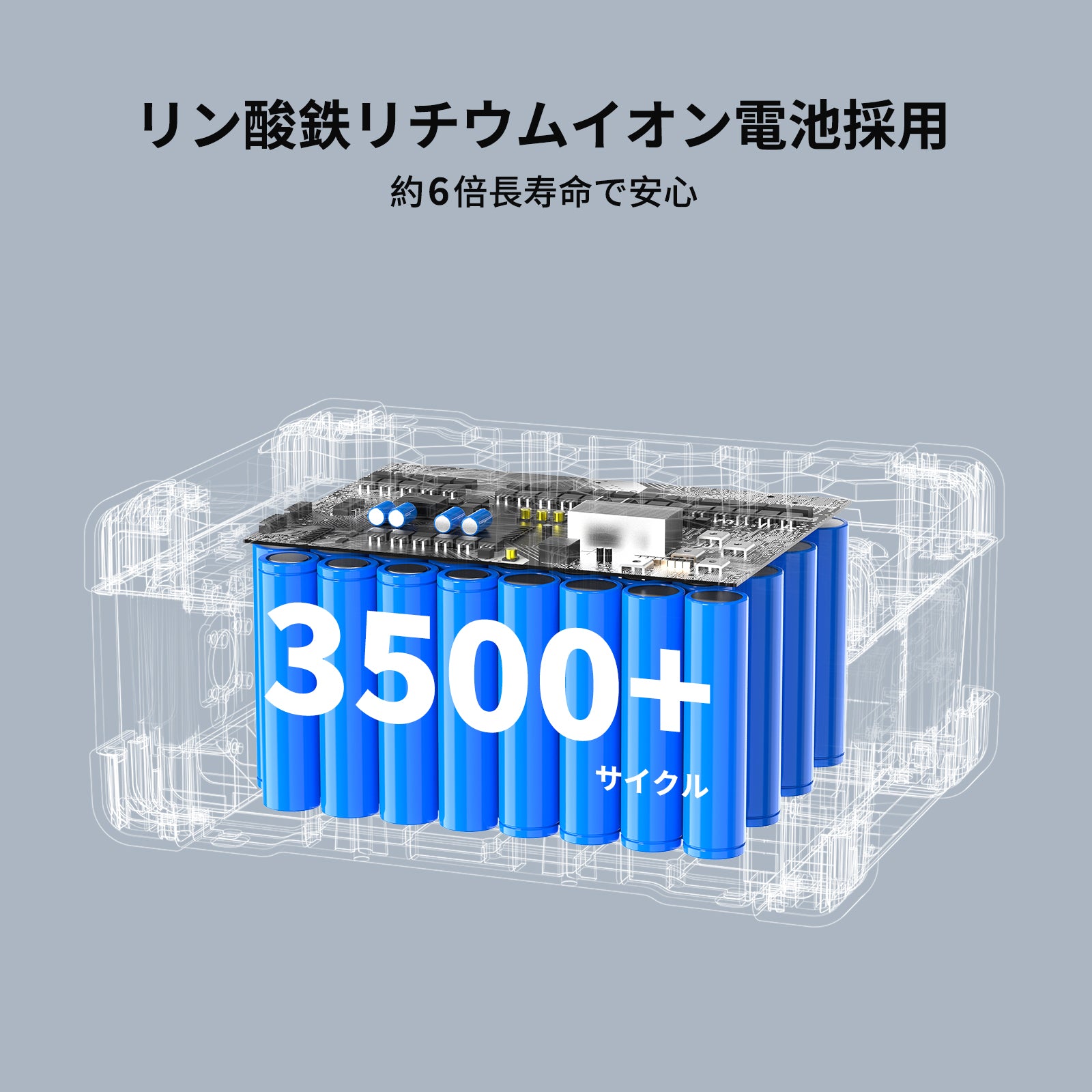 ・リン酸鉄リチウムイオン電池を採用、充放電サイクル数が3,500回以上、1日1回の使用で約 10 年間以上の使用が可能