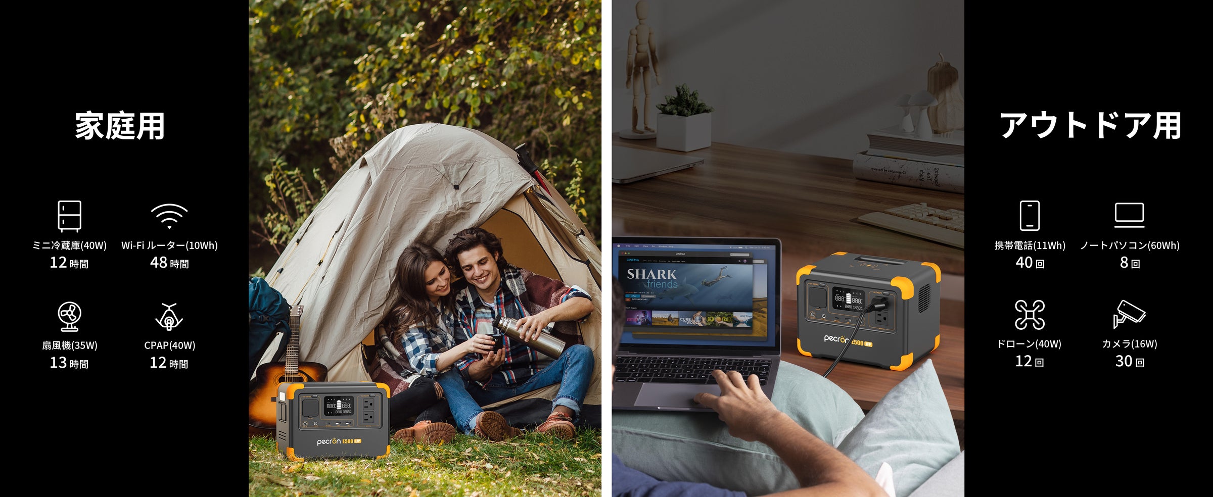 PECRON E500LFP ポータブル電源|576Wh・600W